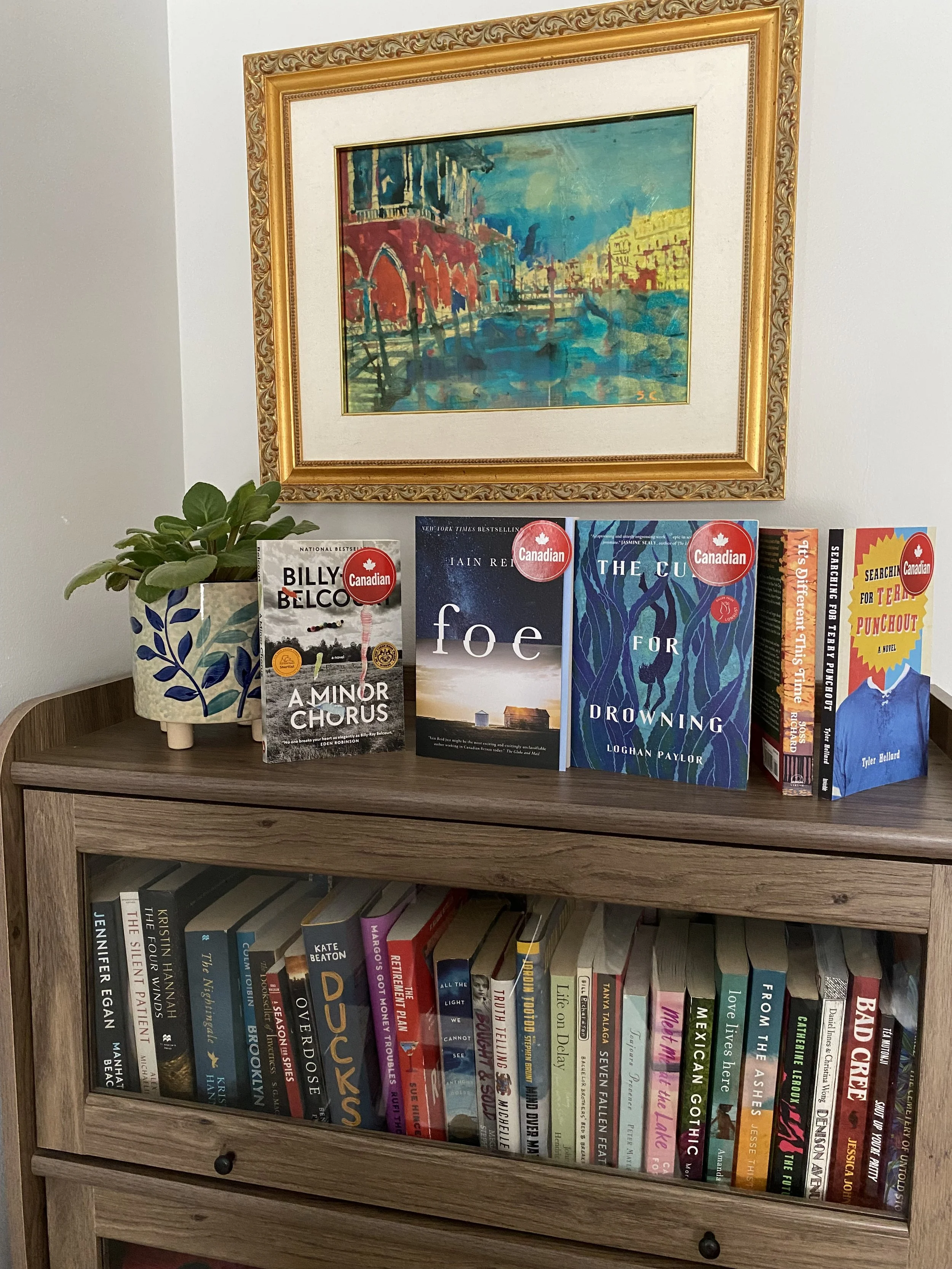 Canada Reads 2026 Contenders are on the top shelf (you can see previous years on the shelf below)